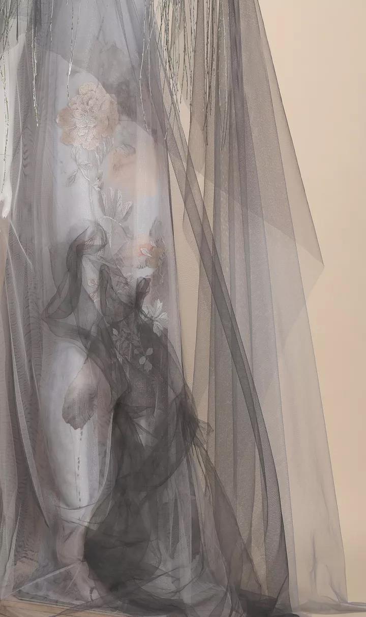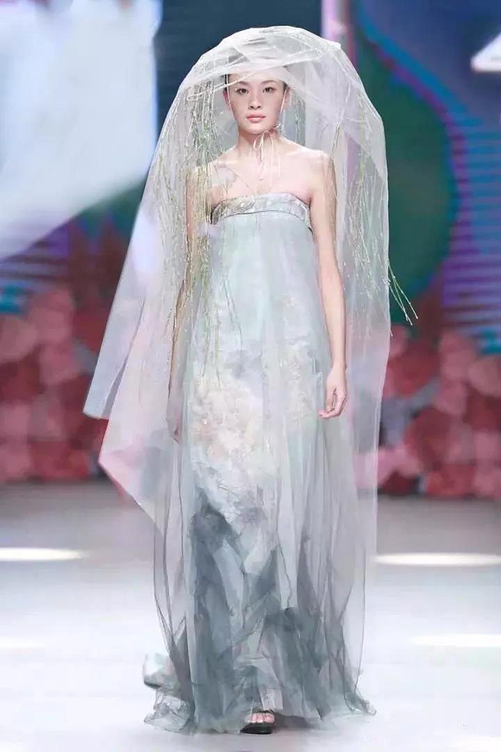模特身着轻纱叠透,头带斗箩杨柳,由远处缓缓走来,墨荷摇曳,幻雅生姿,逸风清扬,翩然于飞。完美的展现华体会体育美的想像空间和灵动性。