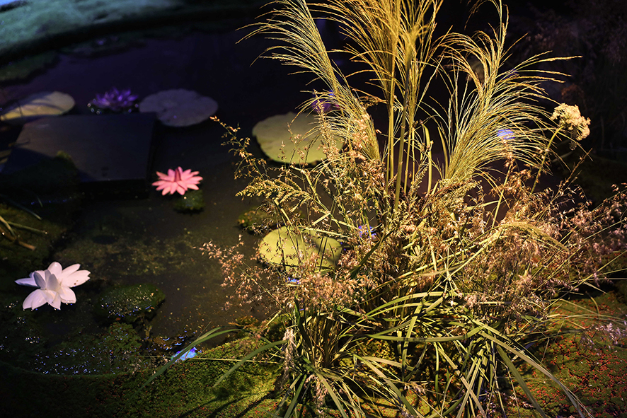 花境溪水涧的华体会体育诗意意境,将舞美、情景剧、影像、音乐进行跨界融合。本次秀演一共分为三幕情景剧,《寻芳记》,《花涧里》,《梦花源》,通过自然与艺术的碰撞,结合最新3D科技的声、光、影等美学视角,营造出时而朦胧,时而真实的五感体验,带领观秀嘉宾们走进充满想象的情景秀无界艺术空间。