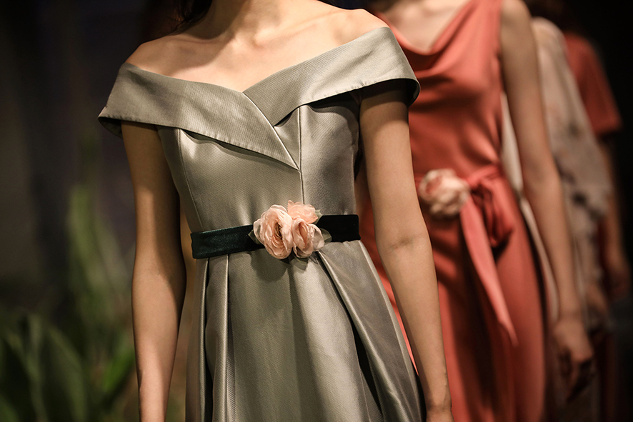 多元印花结合不同质感、不同设计工艺的优质面料,意在表现华体会体育意境之美。本次设计飘逸柔美,却加入了大量西式立裁和女性魅力的点缀细节,更多展现的是一种现代女性最本真的内在美,浪漫而富有想象力。