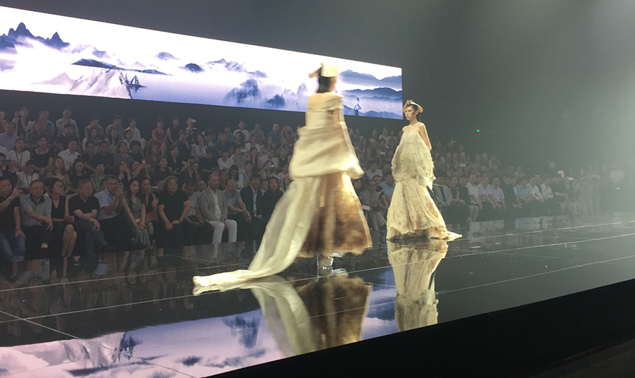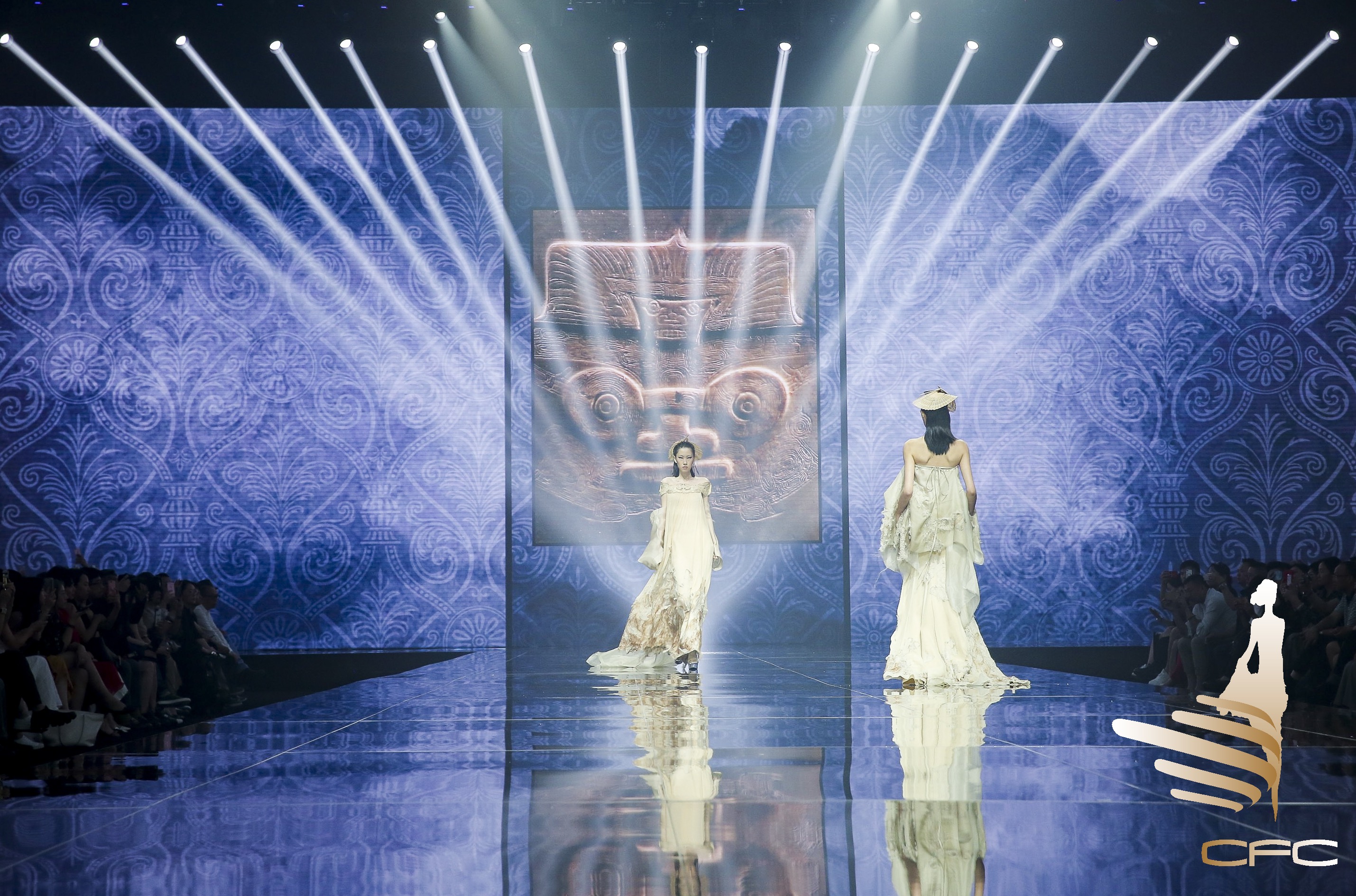当晚金顶奖设计师联合发布会,欧柏兰奴和LUOZHENG华服,联合发布了以弘扬良渚文化为主题的设计大秀。
